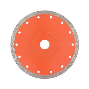 Extradünne Diamanttrennscheibe mit verstärktem Flansch für schnelles und sauberes Trennen ohne Ausbrüche an den Schnittkanten für alle gängigen Winkelschleifer und Fliesenschneider.