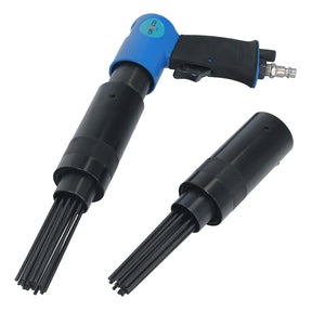 Der Druckluft Nagelentroster ist mit 19 robusten Nadeln von je 3mm Durchmesser ausgestattet und ist ideal zur Entfernung von Rost, Lack, Farbe oder sonstigen Beschichtungen von Soliden Metallteilen geeignet.. Der Nadelentroster eignet sich auch zum Abklopfen von Schweißschlacke, Putz, Farbe oder Beton. Der Druck lässt sich über den mitgelieferten Kupplungsstecker einfach regulieren. Die soliden Nadeln halten für viele Betriebsstunden. Bei Bedarf können Sie aber den Nadelkopf problemlos austauschen.